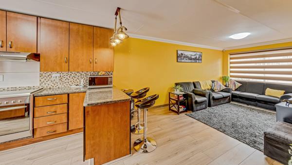 Nicely presented simplex with lovely laminated and tiled floors, consist of 2 sunny bedrooms with built-in cupboards and 2 modern bathrooms (main en-suite). Open plan lounge and kitchen with granite tops and a gas stove. Courtyard and front communal garden. 2 Covered carports.