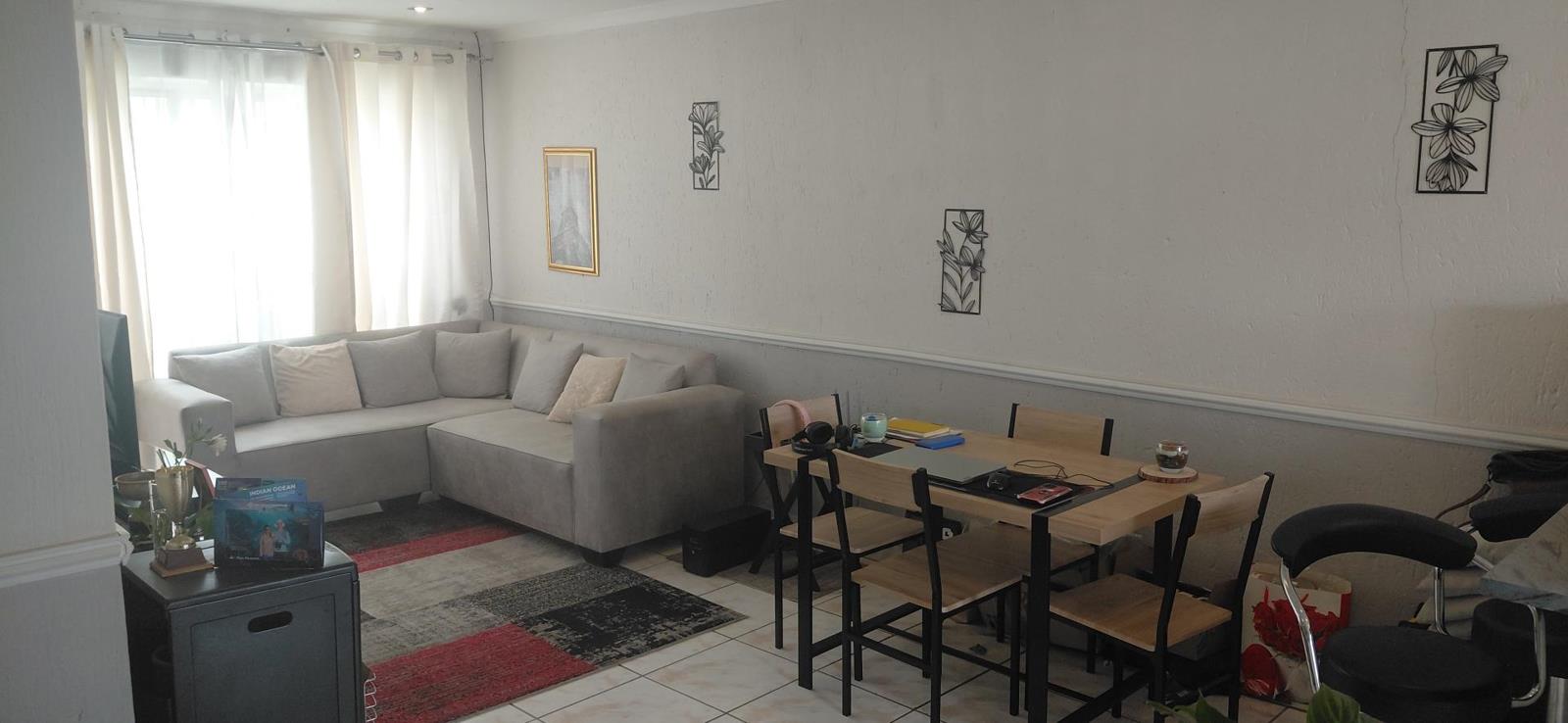 This well-maintained townhouse offers comfortable, secure living with two bedrooms, including a main en-suite, plus a separate family bathroom. The home boasts an open-plan lounge and dining area leading into a modern kitchen. Outside, youll find a small private garden, two lock-up carports and a built-in braai area, along with access to a communal pool. The complex provides excellent security. The seller has disclosed some defects repairs are for the purchasers account, and the property is sold voetstoots.
