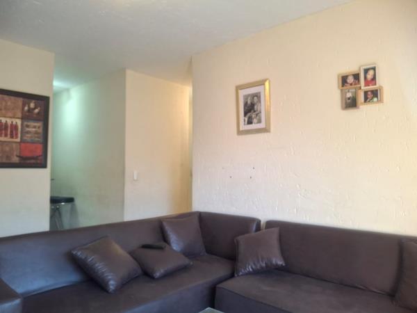 The kitchen is fully fitted and functional, complete with ample cupboard space and a washing machine connection, making daily living both easy and efficient. Enjoy the tranquil ambience of the lounge area which opens up through the sliding door to beautiful views of a lush green garden. This private ground floor feature offers a special outdoor retreat just steps from your living space.