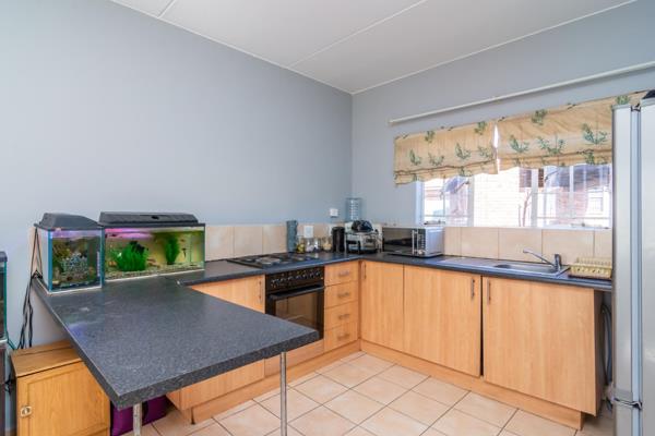The unit offers 2 extremely neat bedrooms with built-in cupboards and tiled floors. The lounge with an open plan kitchen and tiled floor. Fully fitted kitchen with a space for a washing machine.