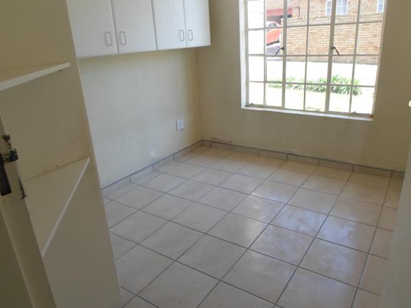 This facebrick double storey townhouse has its own yard. The home is offering 3 bedrooms (main bedroom with balcony to relax on the first floor and the other two bedrooms on the ground floor), and 2 bathrooms (main en-suite). One reception area and kitchen.