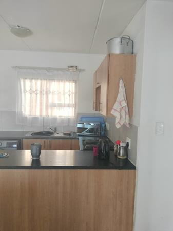Modern kitchen open plan to living area, 2 Sunny bedrooms with built in cupboards, 2 modern bathrooms, main en suite.