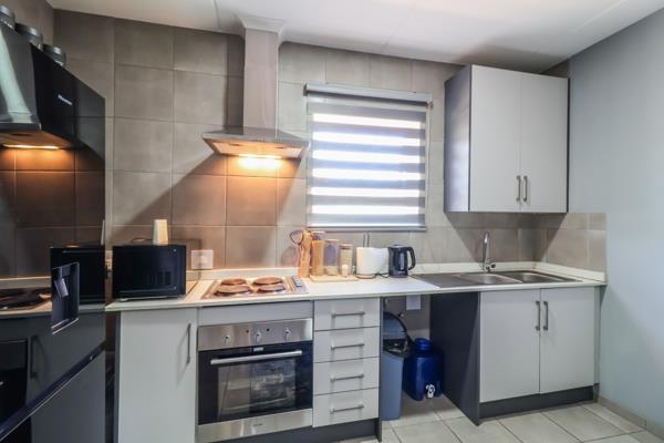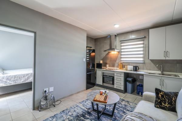 Step into this lovely 1-bedroom apartment in Groblerpark, Roodepoort, a perfect spot for comfortable living. You''ll immediately notice the modern, open-plan design that makes the most of the space. The living area flows seamlessly into a well-equipped kitchen, featuring sleek grey and white cabinetry, tiled walls, and modern built-in appliances like an oven, hob, and extractor. Its a super functional space, brightened by natural light and finished with easy-to-maintain tiled flooring throughout. Its just right for whipping up a quick meal or relaxing after a long day.