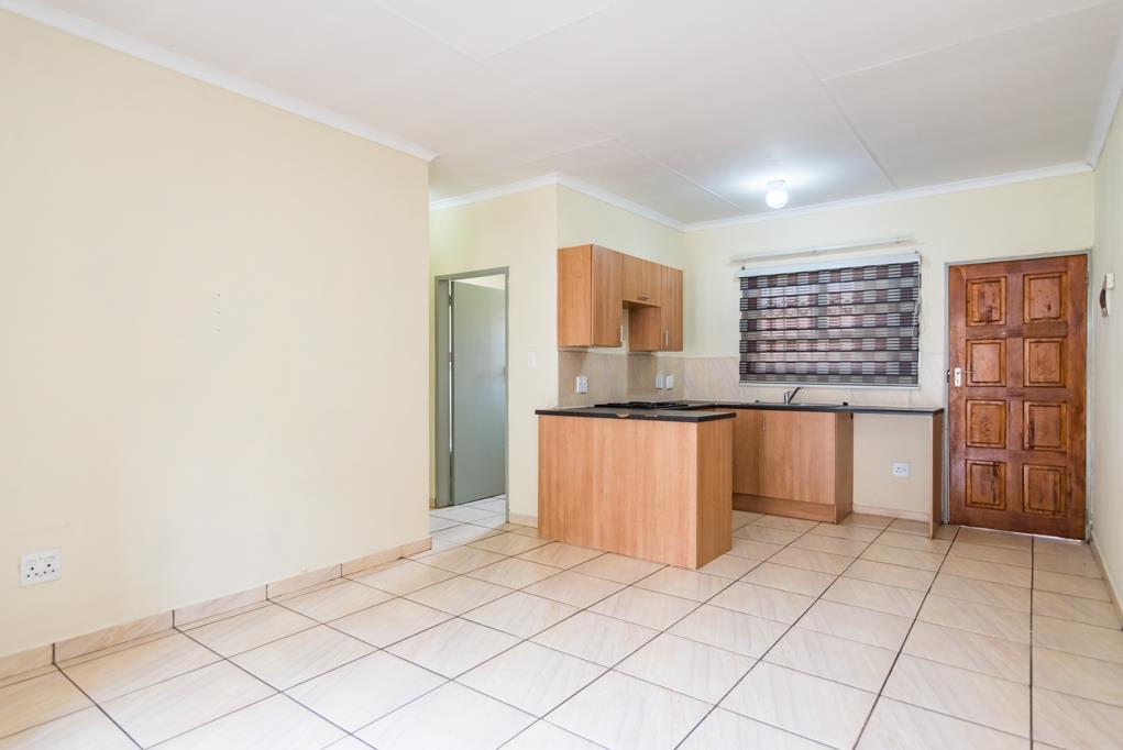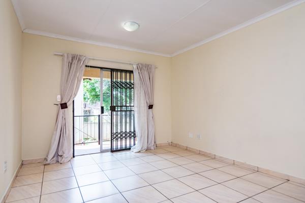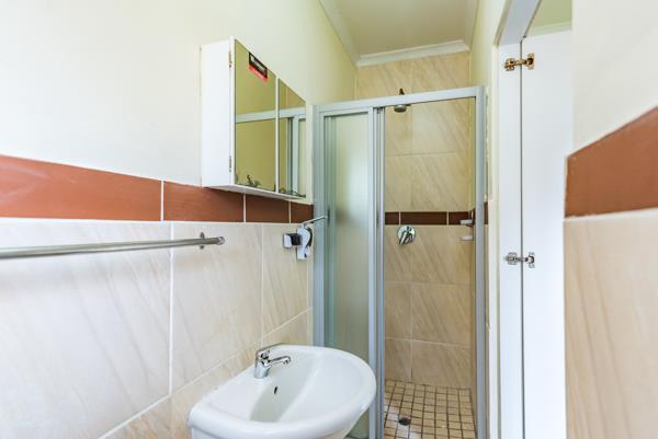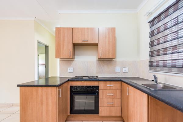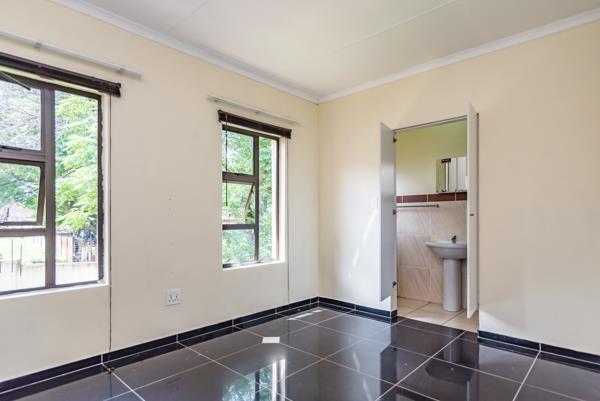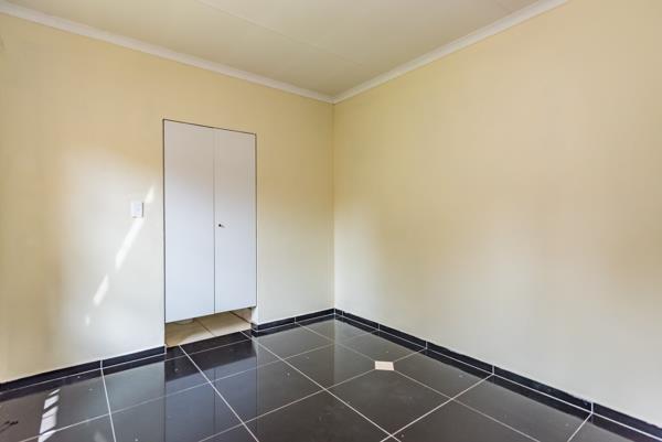 Own this tiled property that offers you access to two bedrooms with built-in cupboards, two bathrooms. First bathroom with ( Basin, toilet in and bathtub).