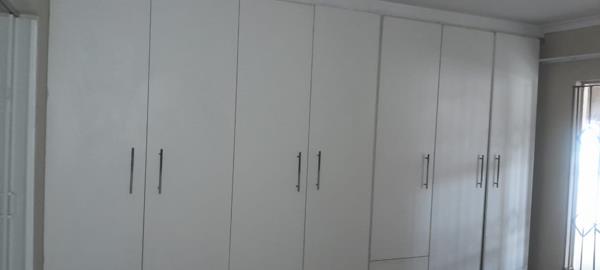 Three bedrooms with built in cupboards and it is tiled.Two bathrooms main with ensuite. Second bathroom with bath tub and toilet tiled and basin Open plan lounge and kitchen with built in cupboards, lounge tiled with sliding door garage for two cars outside toilet fully Walled with security gate. Call now for an exclusive viewing.