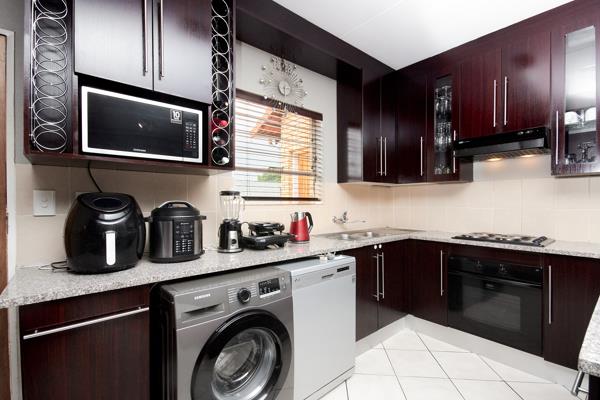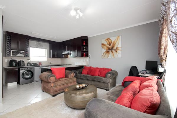 The unit offers a spacious open plan lounge and stunning kitchen with ample cupboards and space for your appliances. There are 3 spacious bedrooms all with neat laminated floors, built in cupboards and ample natural light streaming in. The main bedroom features a full en-suite bathroom with ample space and a big shower for convenience. The 2nd bathroom boasts with a bathtub, washing basin and toilet.