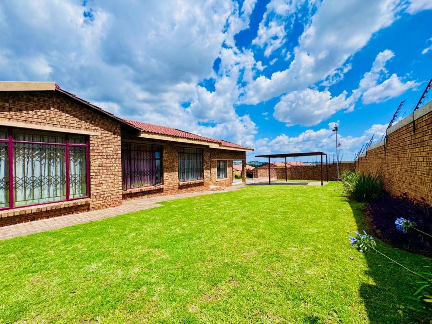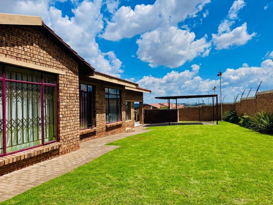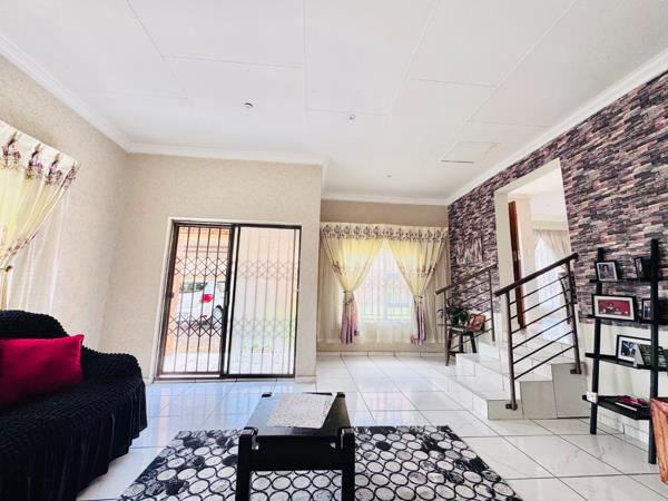 Discover this inviting residential property for sale in Groblerpark, Roodepoort, South Africa, offering a blend of comfort and security. The home presents a strong kerb appeal with its durable face brick exterior, red tiled roof, and a spacious, well-maintained green lawn complemented by paved pathways. Enhanced security features, including high perimeter walls, electric fencing, an access gate, and robust burglar bars on windows and doors, provide peace of mind within this complex and gated community.
