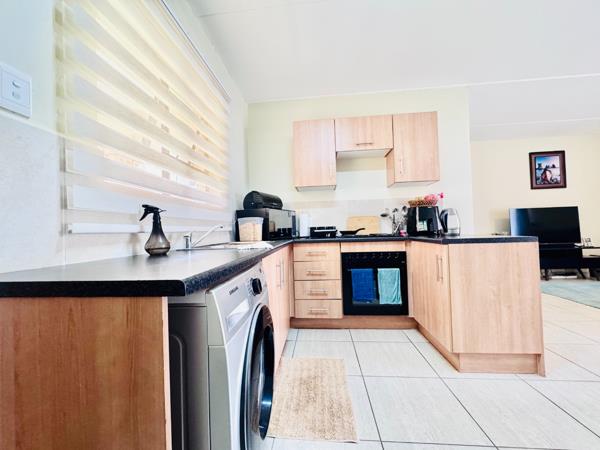 Outside, residents can enjoy a private garden space, perfect for relaxation or outdoor activities. The property includes two dedicated parking bays. Security is a priority within this complex, featuring an access gate and 24-hour security, providing peace of mind for all residents. This home presents a functional and appealing option for those seeking a secure and modern lifestyle in Groblerpark.