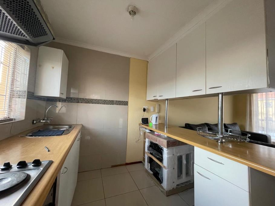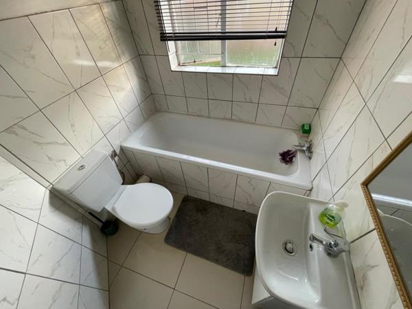 Stunning new tiles in the spacious lounge area. Very elegant! The 2 bedrooms both have built in cupboards and can accommodate double beds with ease. The bathroom has been renovated and looks amazing! The Kitchen has ample cupboards and will fulfil any chefs desires.