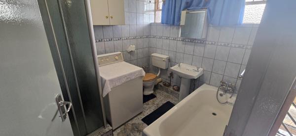 Full Bathroom with bath, shower, basin and toilet, plus space for a top-loader washing machine