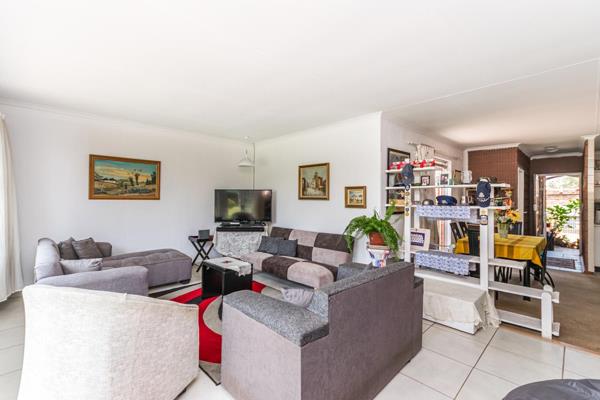 Lounge is tiled, neat and leads directly onto the complex garden and private area to relax and braai.