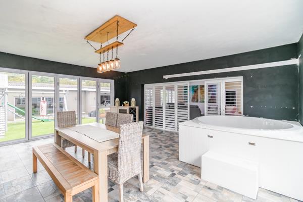 - Family room with built-in braai, patio, and jacuzzi overlooking heated pool