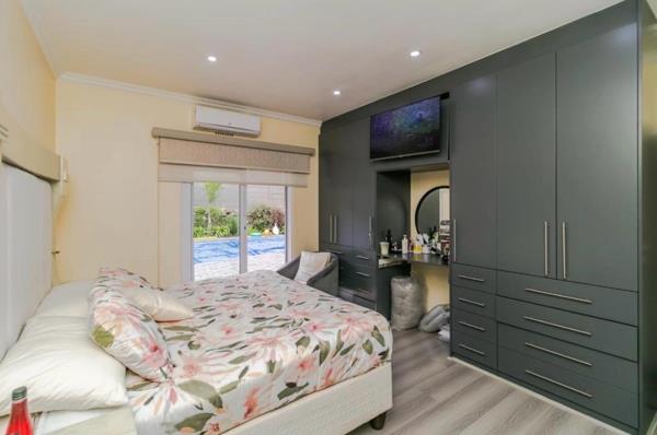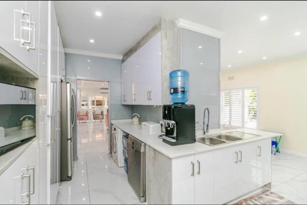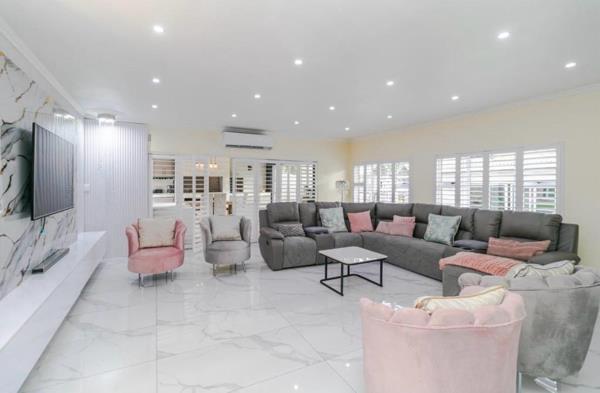 Set on a generous 1450m2 stand, the home features a well designed floor layout of 314m2. The living areas include a welcoming lounge, a familyTV room and a well appointed kitchen, perfect for everyday living and entertaining. The entrance hall and reception area create an inviting first impression, while sliding doors enhance the flow between indoor and outdoor spaces. The property offers four well sized bedrooms and two bathrooms, including a practical onsuite to the main bedroom. Air conditioning throughout ensures year round climate comfort and the home is thoughtfully designed to be wheelchair friendly. Outdoors, enjoy a private patio and neat, established garden, ideal for relaxing or hosting gatherings. The four garages and paved driveway provide ample secure parking and additional storage space.