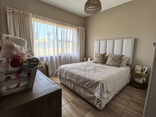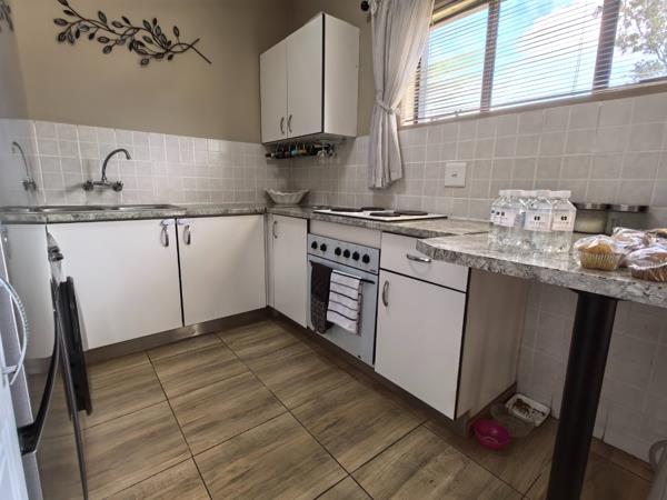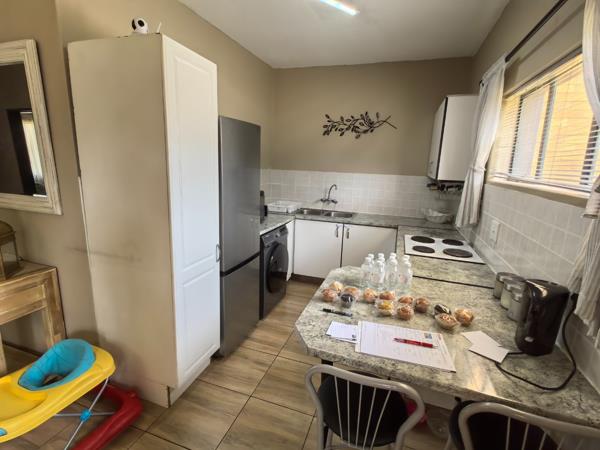 This neat and secure ground-floor apartment offers comfort and convenience in a well-maintained complex close to schools, shops, and major routes. It features an open-plan kitchen and lounge, two tiled bedrooms, a full bathroom with a separate toilet, and both front and rear entrances. Enjoy 24-hour security, prepaid electricity, undercover parking, and beautifully kept communal gardensperfect for first-time buyers, small families, or investors. Dont miss out