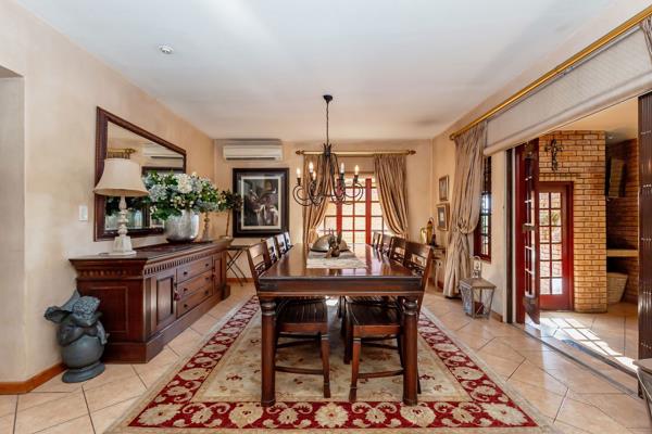 Formal dining room with wood-burning fireplace and an additional lounge with dual-function fireplace wood or gas