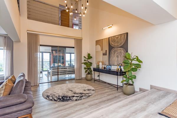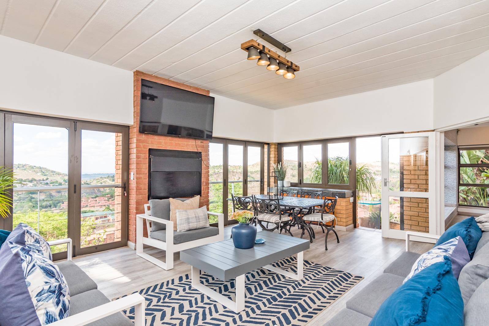 On the lower level a covered patio with a built-in braai with breathtaking views over the valley will keep your guests entertained. The landscaped, low-maintenance garden complements the home''s aesthetic, offering the perfect setting for outdoor relaxation.