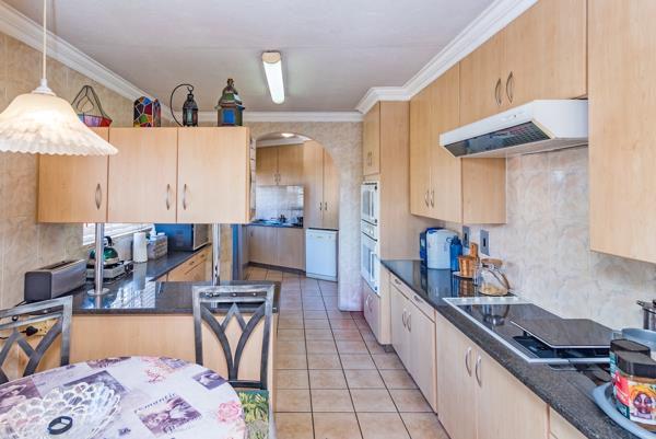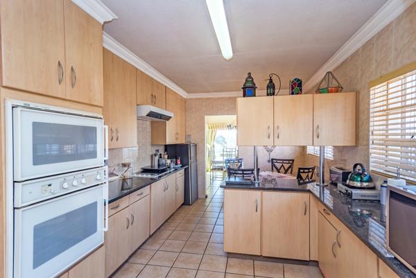 The modern kitchen is a chefs dream: granite countertops, ample cupboard space, a separate scullery, and dedicated wash-up area.