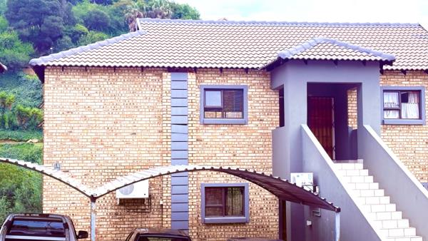 Discover contemporary living in this well-appointed 2-bedroom, 1-bathroom apartment located within a secure complex in Helderkruin, Roodepoort. The property boasts a modern brick facade with grey accents and durable tiled roofs, set against a picturesque green, hilly backdrop, offering excellent kerb appeal.