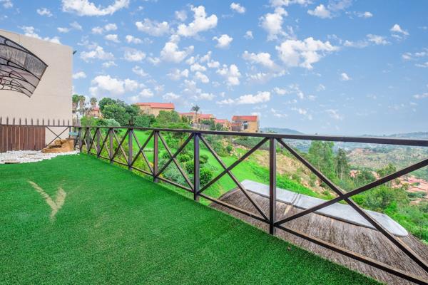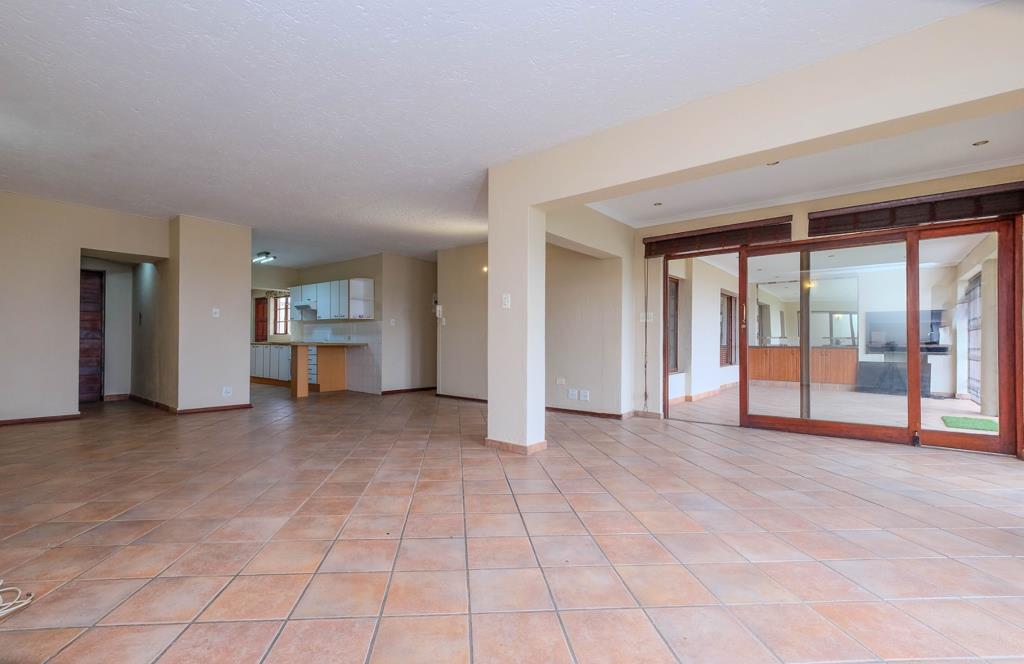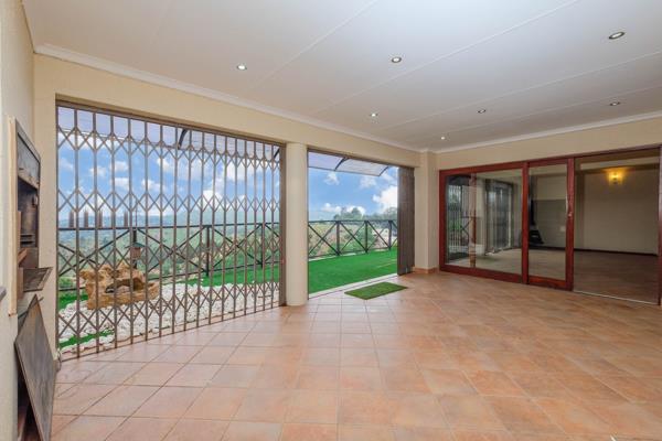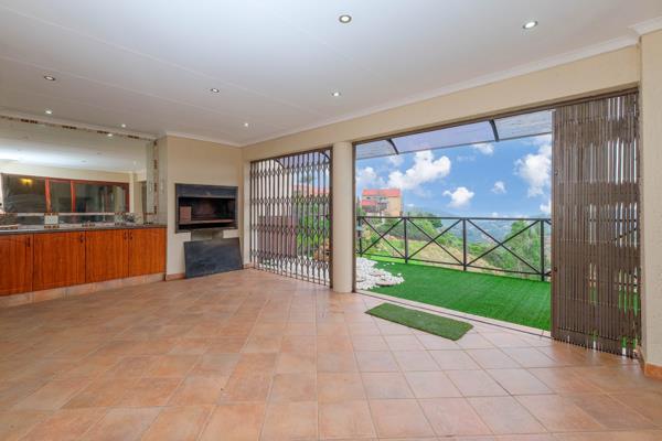The expansive lounge and dining area is filled with natural light and fireplace, this beautiful space opens seamlessly into a large enclosed braai room, complete with a built-in braai, perfect for entertaining year-round while enjoying the gorgeous elevated views.