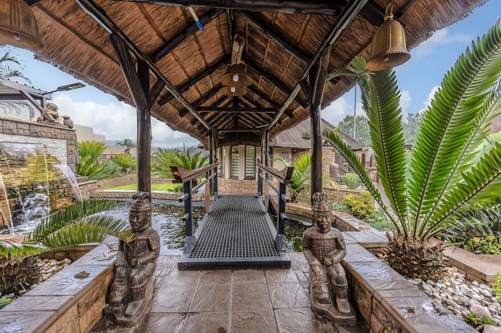 The garden is a standout, featuring a koi pond and tranquil water elements, all beautifully maintained.