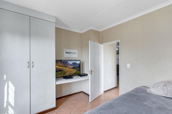 This cozy apartment offers an open-plan kitchen and lounge area, perfect for easy living. The kitchen has a double sink, built-in stove, and plenty of cupboard space. The lounge is bright with natural light and leads into two well-sized bedrooms and a bathroom.