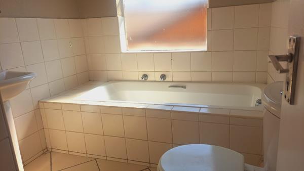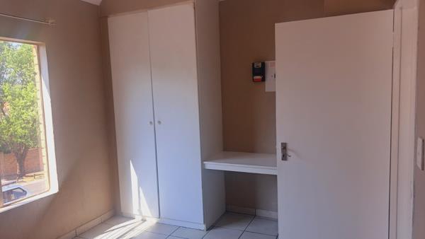 Both bedrooms are designed for comfort, featuring neutral wall colours and continued tiled flooring. The main bedroom includes a spacious built-in wardrobe, offering ample storage solutions. The single bathroom serves both bedrooms efficiently. Security is enhanced with security bars on windows and a security gate on the exterior door, complemented by the complex''s 24-hour security and access gate, ensuring a secure environment for residents.