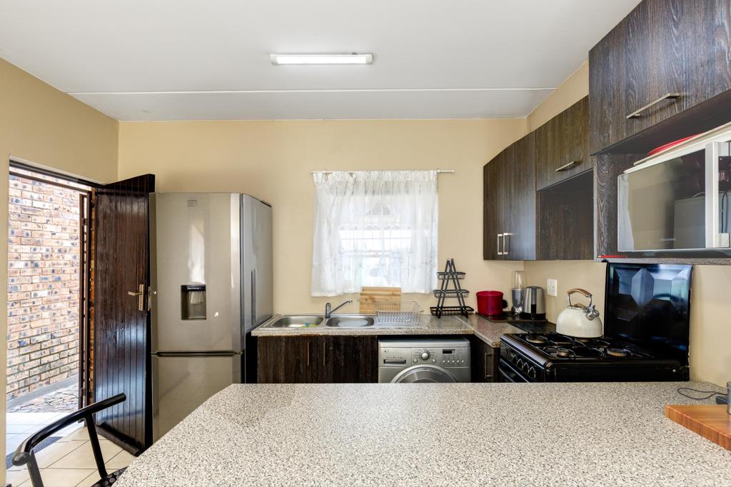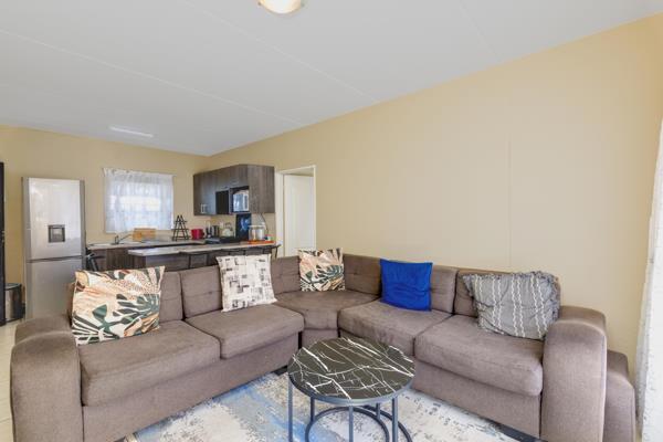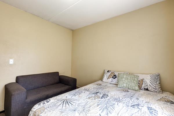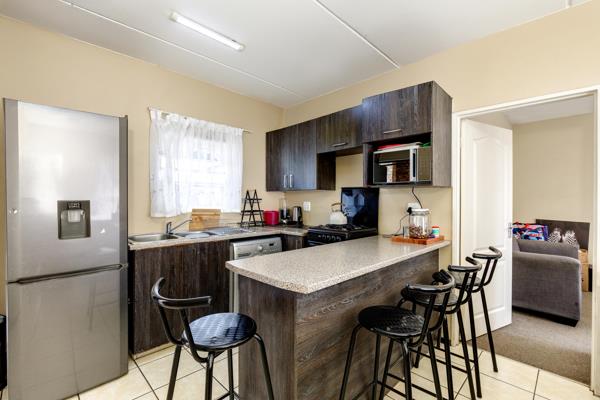 The kitchen is fully fitted and includes a gas stove, so you can keep cooking even during load shedding. With its open plan design directly into the lounge, it creates a comfortable space that works equally well for quiet evenings or hosting friends.