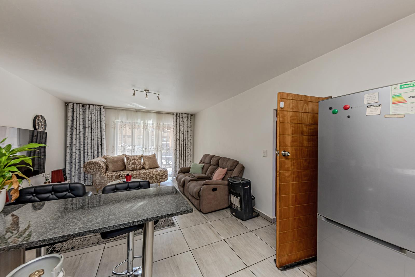 The tiled, livingdining area is well designed to maximise the floor space, enjoy ease of access from the living area to the kitchen. The modern kitchen with ample cupboard space is a chef''s dream. Open-Plan Living, the lounge and kitchen flow seamlessly to create a bright and airy space