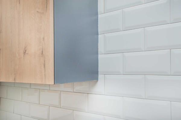 Step inside to an open-plan living and kitchen area, designed for modern comfort and seamless flow. The interior boasts neutral tiled flooring throughout, creating a clean and versatile canvas. The contemporary kitchen features stylish two-tone cabinetry, elegant granite countertops, and a crisp white subway tile backsplash, all illuminated by ample natural light. An accent wall adds a touch of character to the living space.