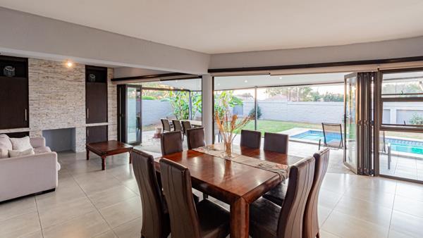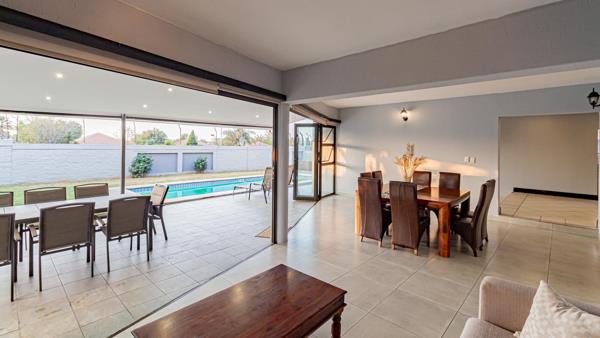 This home boasts stylish finishes and yet exudes a warmth that you will need to experience for yourself. We start with the stunning open plan kitchen that has an island with a gas hob and under counter oven, the kitchen overlooks what could either be a main lounge or a TV room so you can cook up a storm whilst still engaging with your family. Adjacent to this is a dining area and lounge, complete with stackable doors which open up onto a stunning patio. The covered patio leads to the pool, perfect for the hot summer days. The garden is large enough to run around in with your kids and fur babies.