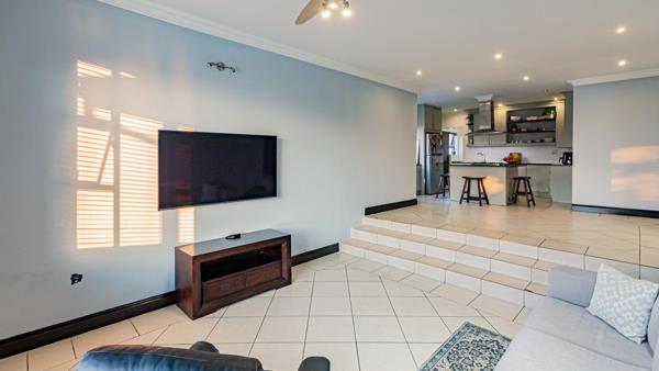 Upstairs has four generous bedrooms. The main en-suite bedroom boasts ample built-in cupboards and opens onto a large private balcony with breathtaking views your perfect spot for quiet sundowners. A second bedroom also enjoys its own balcony, the three bedrooms share a family bathroom. Warm laminate flooring in the main bedroom and two additional rooms adds a touch of warmth and elegance.