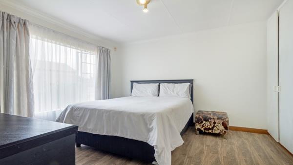 Outside, the yard is spacious. There is a thatch lapa where you can enjoy a braai with friends. There is also space where you can add a swimming pool, as the previous one was closed. The garden is clean and well maintained.