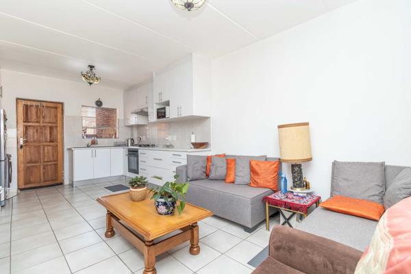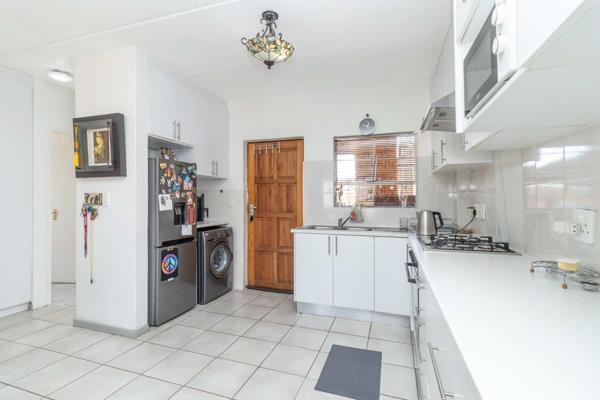 Step into the sleek, modern kitchen, equipped with ample cabinetry and a gas stove, ensuring energy efficiency and convenience. The spacious lounge seamlessly extends to a generously sized patio, which can potentially be enclosed to create a third room, with approval from the body corporate. This patio opens up to a pet-friendly garden, ideal for outdoor enjoyment.