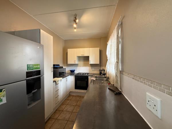 Step inside and be greeted by a warm, sun-filled open-plan living area where the lounge flows seamlessly into a sleek, modern kitchen. The kitchen is thoughtfully designed with space for two appliances and ample cupboard storageperfect for easy cooking, entertaining, or simply enjoying everyday life.