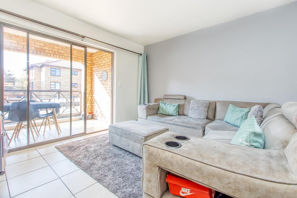 An open plan lounge, that is spacious and leads out onto the balcony.