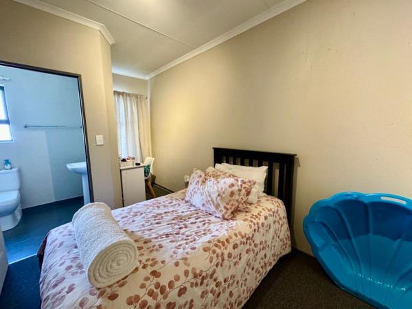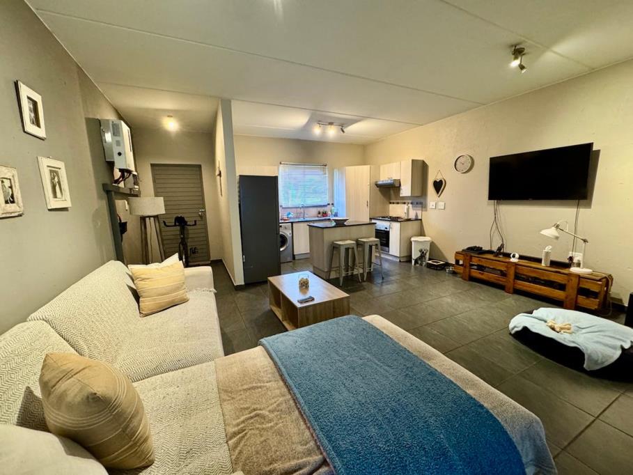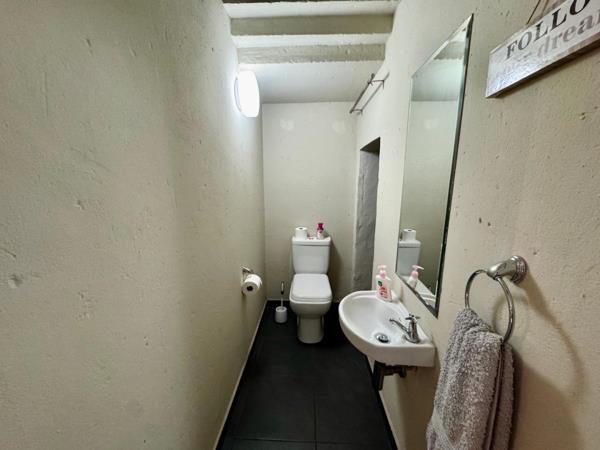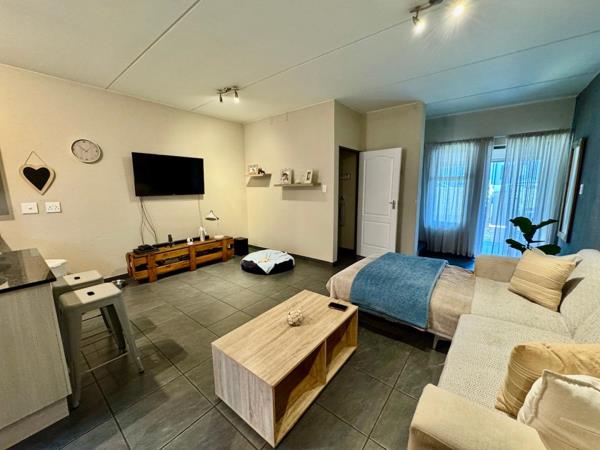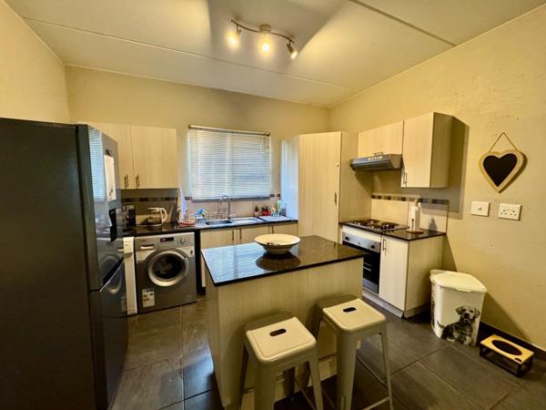 This charming unit is perfect for first-time buyers or as an investment opportunity. The ground floor features a modern open-plan kitchen, dining area, and lounge, complemented by a convenient guest toilet. Step out from the lounge onto an enclosed patio with a built-in braaiideal for entertaining.