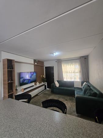 Modern 2-bedroom, 2-bathroom ground floor apartment in the secure Saffron Gardens complex, Honeydew. The unit offers an open-plan kitchen and lounge with space for dining. Both bedrooms have built-in cupboards, and the main bedroom includes an en-suite bathroom. The second bathroom is well-sized with modern finishes. The unit comes with 2 covered carports and ample visitor parking. The complex features 24-hour security, access control, and a communal play area. Located close to main roads, schools, and shopping centres. Ideal for first-time buyers or investors.