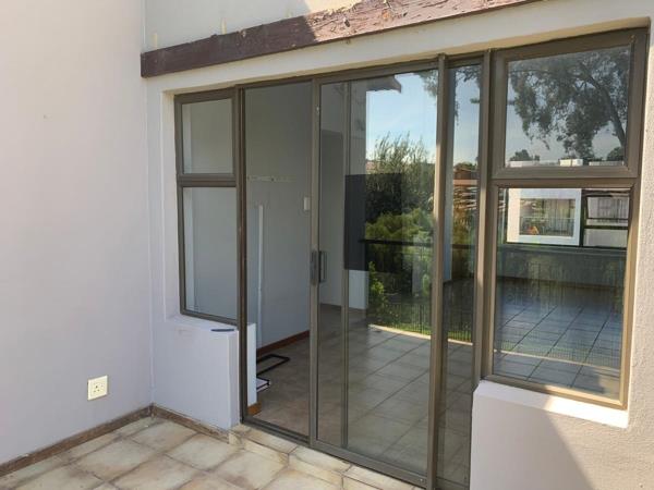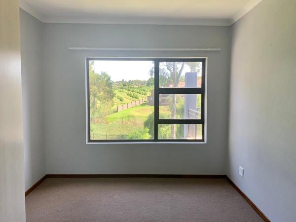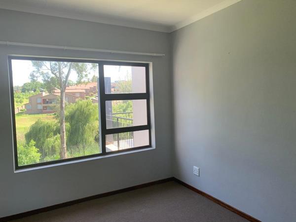 Neat 2 bedroom, 2 bathroom apartment situated in the popular Place de Tetre complex. The lounge area offers double volume ceilings with a sliding door onto the patio that looks out over the countryside. The kitchen has space for a double door fridge as well as 2 undercounter appliances. 2 carpeted bedrooms, each with built in cupboards and their own bathroom -showers in both, with an added bath in the main en-suite.