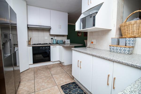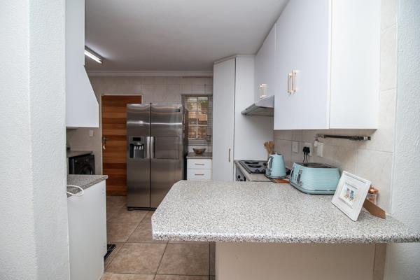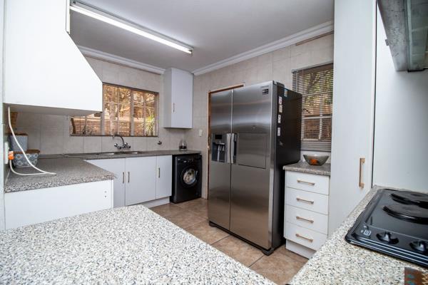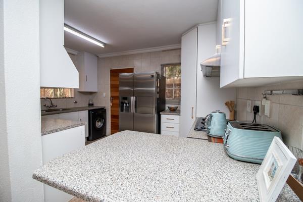 The kitchen has a mixture of open and closed ample cupboard space, a space for a double door fridge, washing machine connection, which can be used for a dishwasher as there''s a washing machine connection in the garage. The back door leads you outside to a washing hanging area.