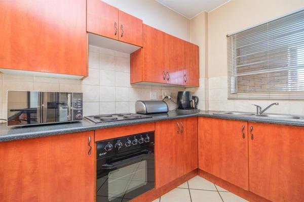 The apartment features two well-sized bedrooms with built-in cupboards and a neatly finished bathroom. The spacious, light-filled kitchen is thoughtfully designed, providing ample cupboard space and flowing effortlessly into the living area ideal for everyday living and easy entertaining.