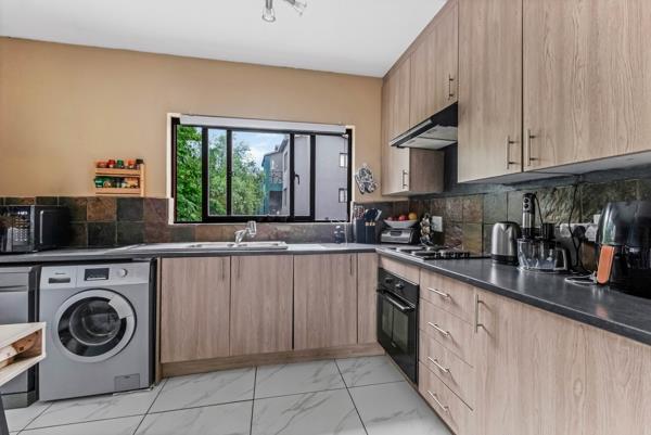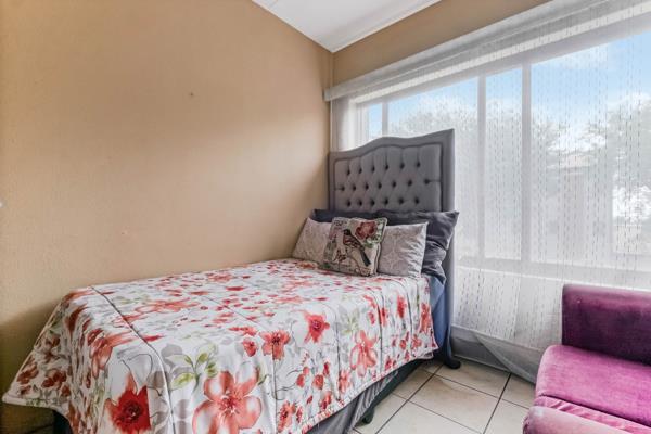 Two well-sized bedrooms, both generously lit with natural light and views over the complex, are tiled and have built-in cupboards. The main bedroom has an en-suite bathroom, complete with a bath. The second bathroom, with a shower, services the second bedroom and guests.