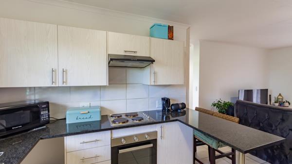 A well-kept, modern apartment located in a secure complex is great for investors or first time buyers.. This top floor unit consists of two bedrooms, two bathrooms, open plan kitchen and lounge which opens out onto the spacious balcony. Kitchen with granite counter tops and ample cupboard space. Living area is large enough to accommodate lounge and dining room. Main bedroom has it''s own en-suite bathroom with shower. Family bathroom with bath. Both bedrooms have built-in cupboards. Tiled throughout. There is one carport and plenty of visitors parking. Swimming pool in the complex. Situated in a secure complex, close to all the amenities, good schools, walking distance to Blueberry shopping mall and easy access to Beyers Naude Drive. 247 security, controlled gate access, security post at the main gate giving you the freedom to lock up and go!