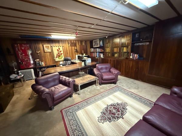There is a kitchen and a scullery. Pool. Borehole and garages spacious enough for a caravan. Also an outside room ideal for SQ.