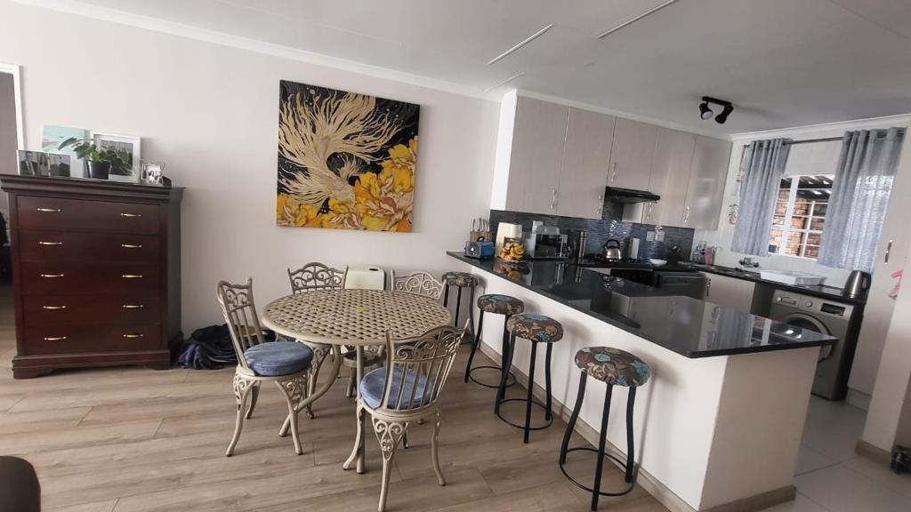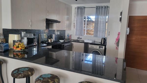 As you step into this delightful home, you are greeted by a warm open plan space filled with light. The kitchen is well laid out with granite tops ,space for 2 wet appliances, a double door fridge, and loads of cupboard space. This is open plan to your dining and lounge area - large enough to fit your furniture with ease. A 2nd living space is in the form of an enclosed patio is a bonus, which in turn leads to your private garden. There are 2 bedrooms with built in cupboards, as well as a full bathroom. A study has direct access to your automated garage. Flooring is vinyl throughout for ease of maintenance.