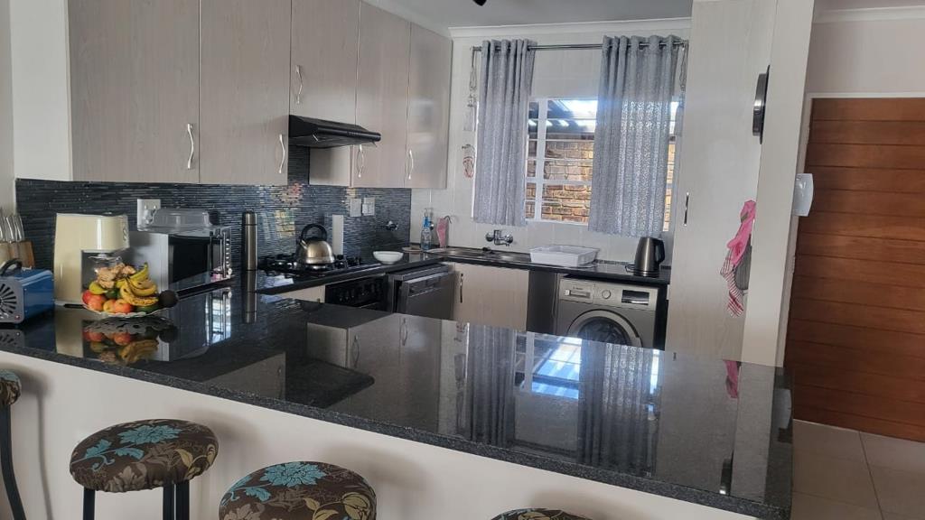This particular unit has many extras: gas hob, gas geyser kitchen, solar geyser bathroom, as well as a state of the art solar system - not included in the price, but can be negotiated.