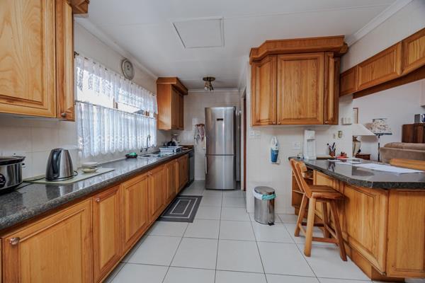 The well-appointed kitchen boasts extensive cupboard space, a double sink, pantry, breakfast nook and room for all your appliances. It opens seamlessly into a large dining area, perfect for hosting family and friends. The adjoining lounge flows out to an enclosed patio an inviting space for relaxed mornings or quiet evenings. A neat garden with a built-in braai adds to the homes charm.