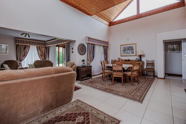 The floor plan is cleverly designed for comfortable living. Two bedrooms and a full bathroom are situated on one wing of the home, while the spacious main bedroom with its own full en-suite bathroom is privately positioned on the opposite side. A fourth bedroom or study provides added versatility. The double-volume ceiling in the lounge and dining area creates an airy, open feel, enhancing the overall sense of space. A built-in inverter is included, and the complex is fibre-ready.