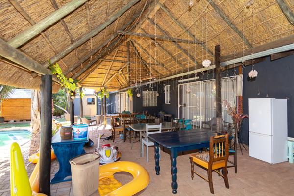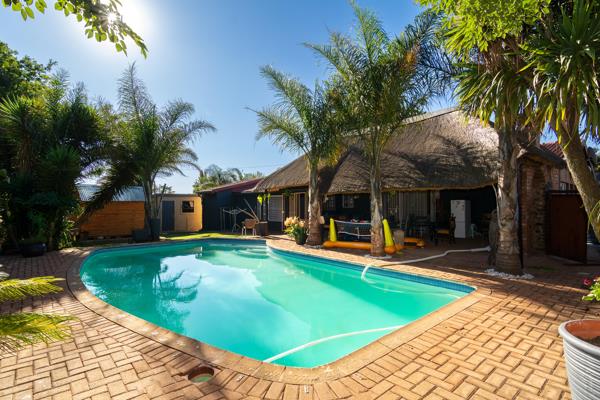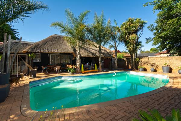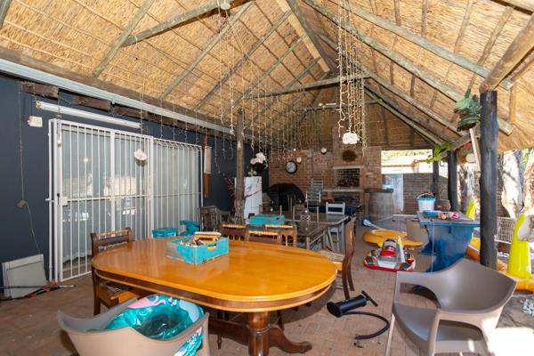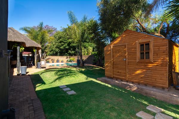 The patio boasts a huge, covered entertainment area that overlooks a sparkling swimming pool. Whether you''re hosting a summer braai or enjoying a quiet evening by the pool, this space promises countless hours of enjoyment. The back garden is manicured and offers two Wendy Houses for extra storage.