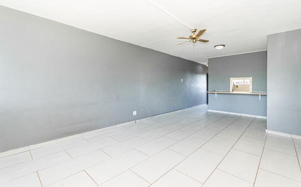 The spacious living area is versatile enough to accommodate a small dining table and a comfortable lounge suite, while the cozy kitchen is designed for easy living.