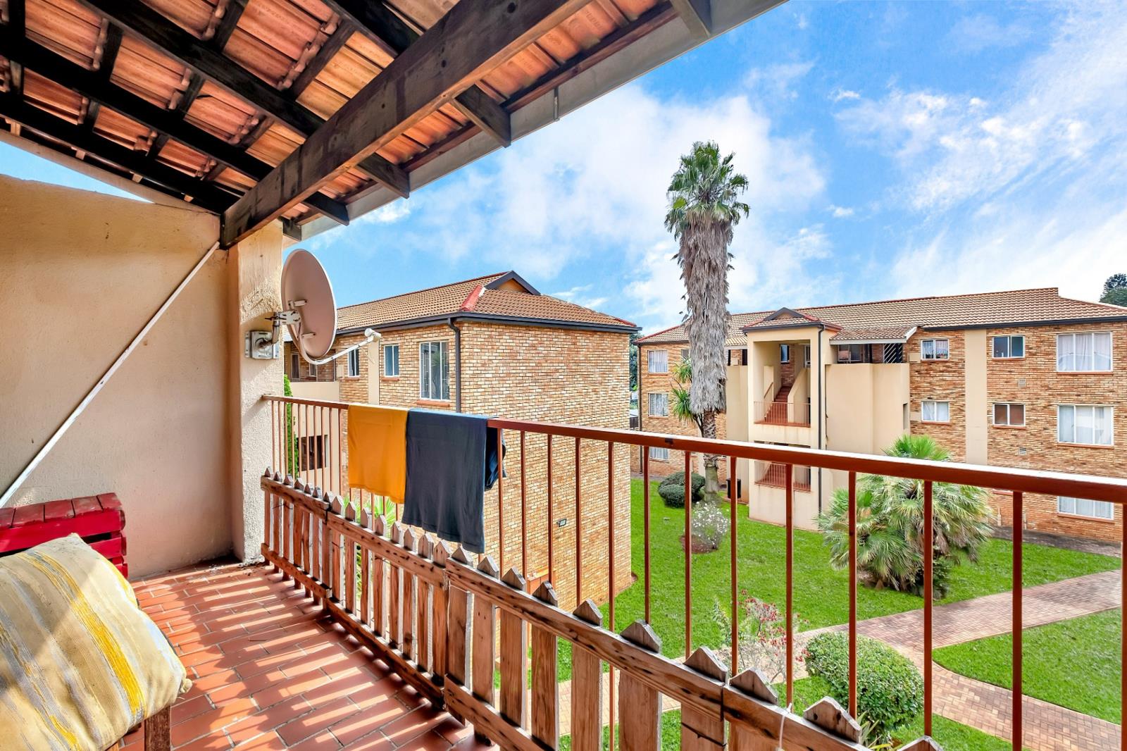 Both bedrooms feature built-in cupboards, and the bathroom is equipped with a bath and shower combo. The complex offers residents the convenience of a communal swimming pool, perfect for cooling off on warm days, as well as ample visitor parking and secure access control.